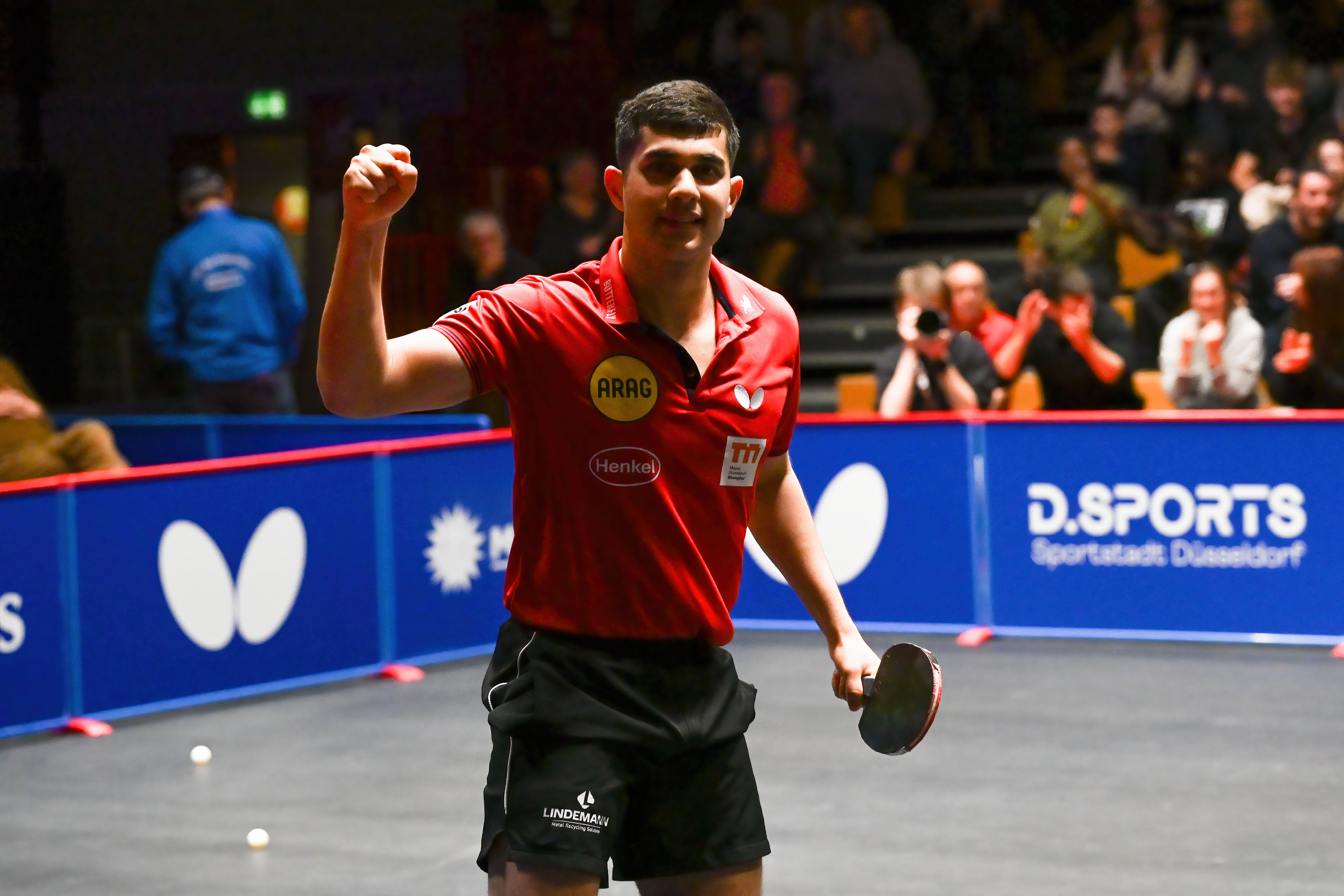 Kanak Jha, die heutige Nummer eins der Borussia, hatte es auf dem Schläger, die Partie zu beenden. Er schaffte zunächst, Bastian Steger permanent unter Druck zu setzen und sicherte sich die ersten beiden Durchgänge. Dann wurde es enger, den dritten Satz musste Jha abgeben und im vierten einen Rückstand aufholen und einen Satzball abwehren – mit Erfolg: Das 3:1 für den 25-Jährigen sorgte auch für das 3:1-Endergebnis für die Düsseldorfer.