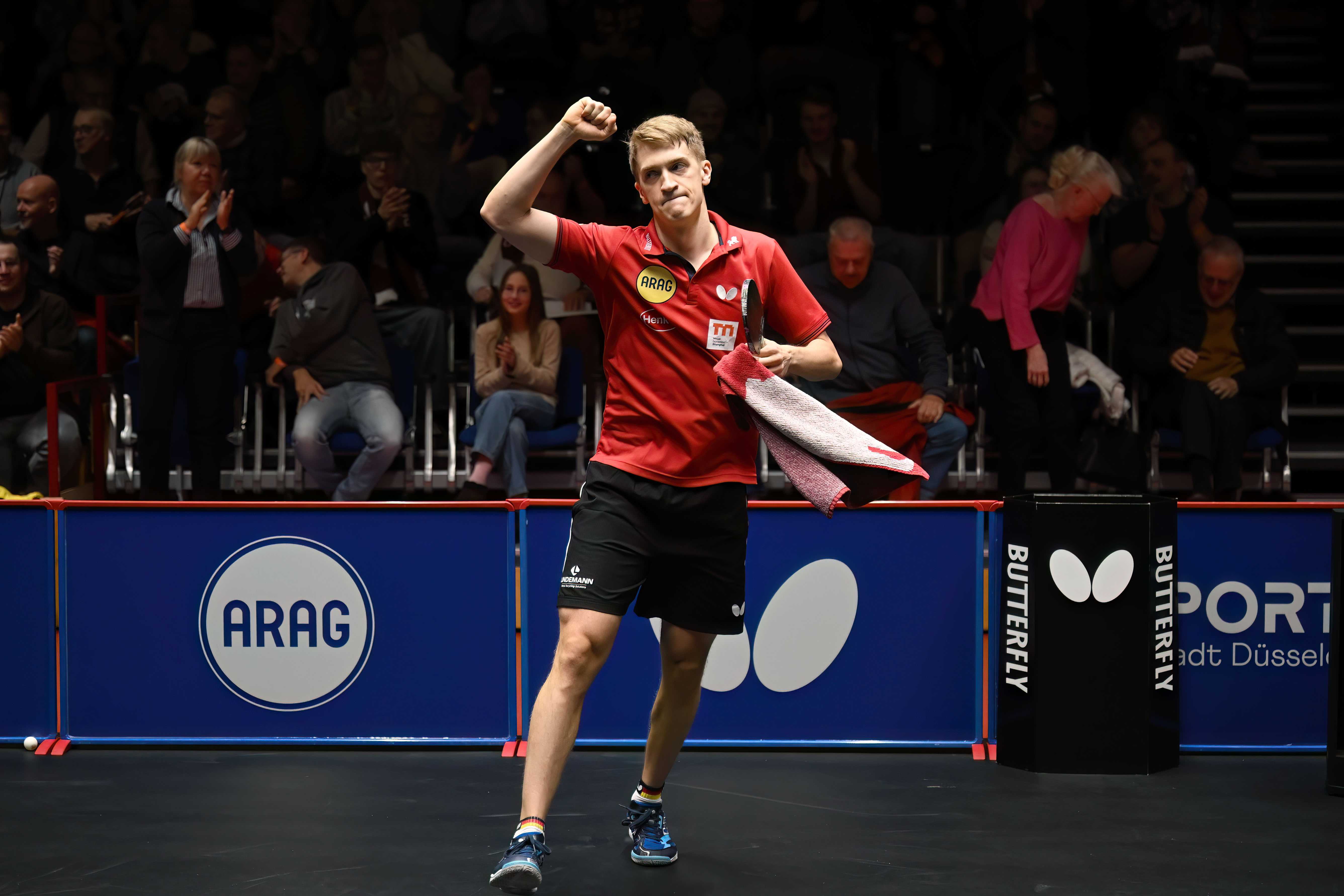 Anton Källberg machte es dann richtig spannend: Gegen Benedikt Duda sah es zunächst nicht gut aus. Der Bergneustädter, Nummer zehn der Welt, gewann die ersten beiden Sätze. Durchgang drei ging dann sehr deutlich an den Schweden. Es entwickelte sich ein Match auf absolutem Topniveau und Augenhöhe. Mit Vorteilen für den Borussen, der ausgleichen konnte. Im Entscheidungssatz blieb es knapp; meist lag Duda in Front. Bis Källberg seinen Gegner im wahrsten Sinne des Wortes in die Knie zwang, auf 8:8 ausglich und sich sofort zwei Matchbälle erspielte. Er beendete die Begegnung mit einem knallharten, perfekt platzierten Vorhandball in Dudas tiefe Rückhand. Pausenstand: 2:0 für den Rekordmeister.